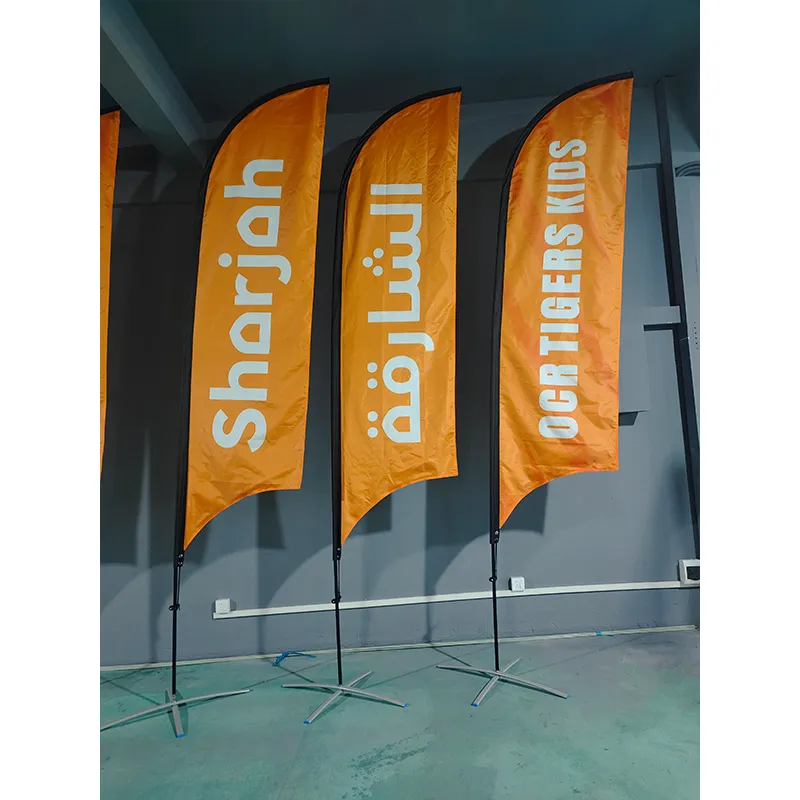 A bandeira de praia de penas, também conhecida como bandeira de praia plug-in, é uma ferramenta promocional amplamente utilizada em atividades ao ar livre. As bandeiras de faca publicitárias produzidas pela Earth Display adotam um design de mastro de fibra de carbono plugável, que é conveniente para instalação e desmontagem rápidas. São leves, resistentes ao vento e apresentam altas opções de personalização. Eles são amplamente utilizados em maratonas, salões de automóveis, cerimônias de abertura e outros eventos.