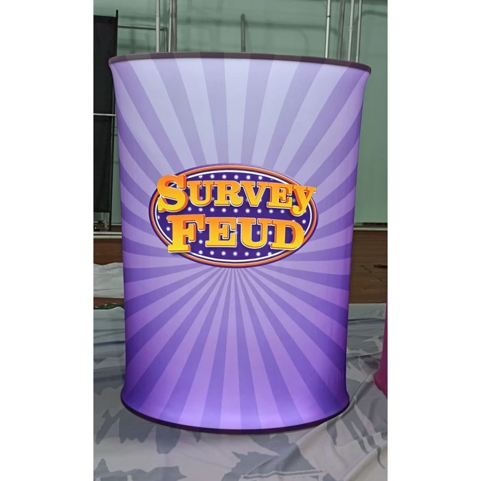 O balcão elevável redondo LED é fácil de configurar, tem uma aparência elegante e ilumina seus produtos como um holofote. Esse é este contador redondo de LED. É feito com tecido elástico de primeira linha que parece durável e imprime os gráficos da sua marca em cores vivas e nítidas - sem mais logotipos desbotados e opacos. A estrutura é de alumínio resistente, por isso resiste a vários eventos. Eles são integrados, lançando um brilho brilhante e uniforme que torna seus produtos ou materiais promocionais impossíveis de perder. Precisa ajustar a altura? Basta levantá-lo – sem ferramentas complicadas. Quer você seja um profissional de marketing individual ou parte de uma equipe, você terá esse balcão montado e pronto para impressionar os clientes em minutos. Quando o evento termina, ele se dobra um pouco, então transportá-lo para o próximo local é muito fácil.